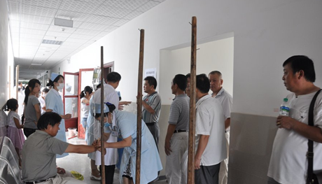 2011年8月9日,江西瑞昌市工業園西區一工地發生自來水中毒事故,工地上施工人員及周邊住戶,先后共有約50人早餐后出現消化不良反應,部分患者伴有嘔吐現象。大量中毒市民正在瑞昌市中醫院接受治療。中毒,自來水中毒,江西,瑞昌,飲用水