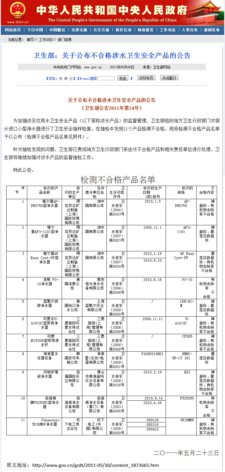關(guān)于衛(wèi)生部2011年第14號公告的聲明(2011.5.30)