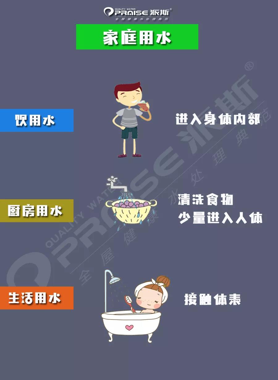 我們知道,在日常生活中,對水的使用,飲水只是其中之一,從需求的不同來看,大致可分為三類,飲用水、廚房用水以及生活用水。飲用水只是為解決喝水問題,廚房用水包括廚房解決吃食所需的一切用水,生活用水主要包括衛浴、供暖等。從對人體接觸程度的不同來看,飲水是進入人體內部的,而廚房用水是清洗進入人體內部食品并少量進入人體的,生活用水只接觸到人體體表。